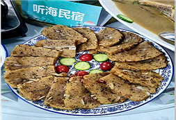 咫尺,移步即到海,海浪沙灘盡在腳下;也晚躺在床上數(shù)星星,枕聽海浪撲打聲。民宿共有10個(gè)面朝大海的客房,3個(gè)餐飲包間和一個(gè)公共大廳,民宿漁家海鮮餐和錫餅菜已成為當(dāng)?shù)仄放铺厣惋嫛?/span>